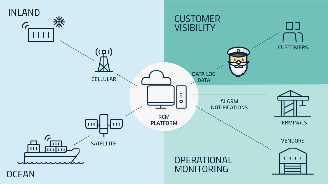 Remote Container Management is the infrastructure enabling Captain Peter, which brings unrivalled transparency to the shipping of perishable cargo. The continuous data flow from our reefer containers enables our operations team to take better care of your goods and via Captain Peter you can stay up-to-date on conditions inside the container.