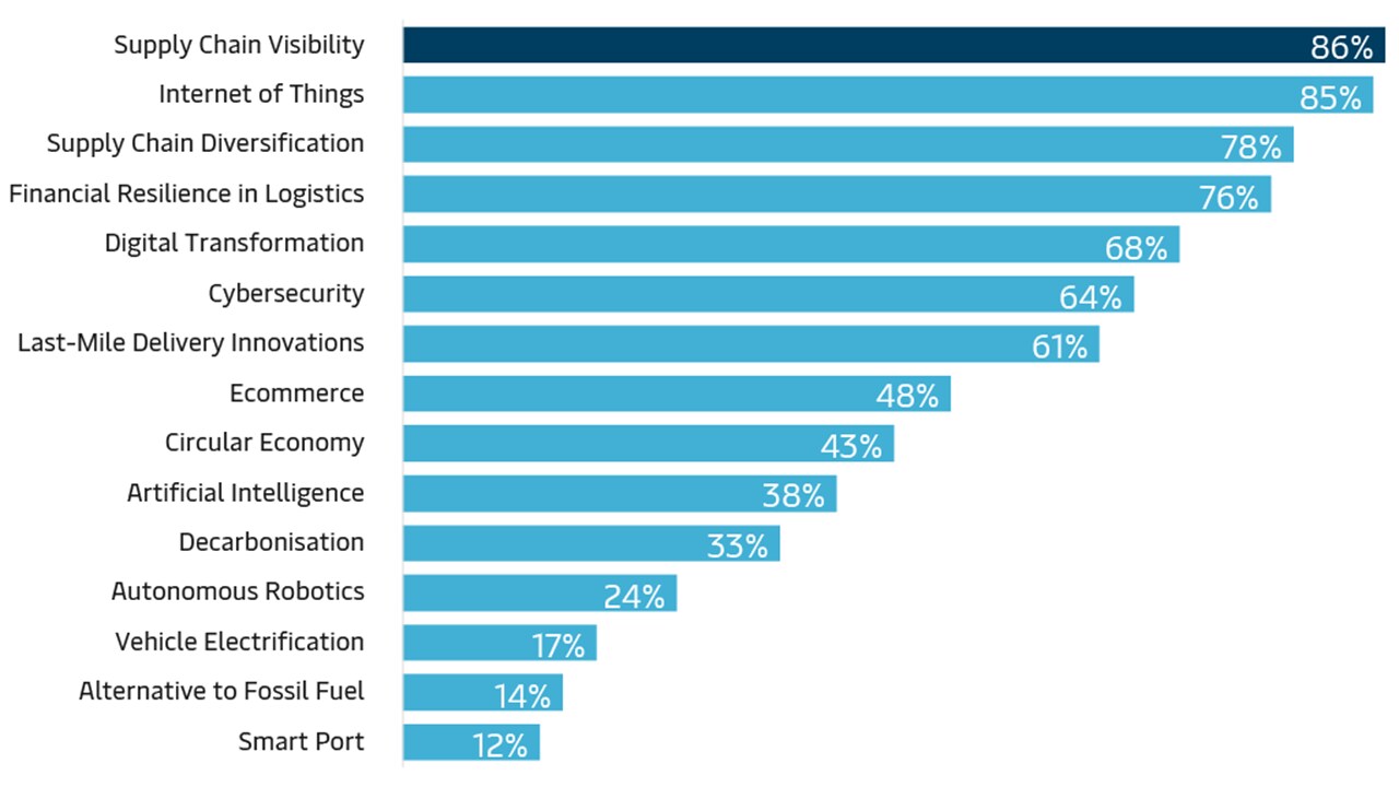 A 2024 Maersk survey shows that decision makers rank Supply Chain Visibility 1st out of the top 15 trends.