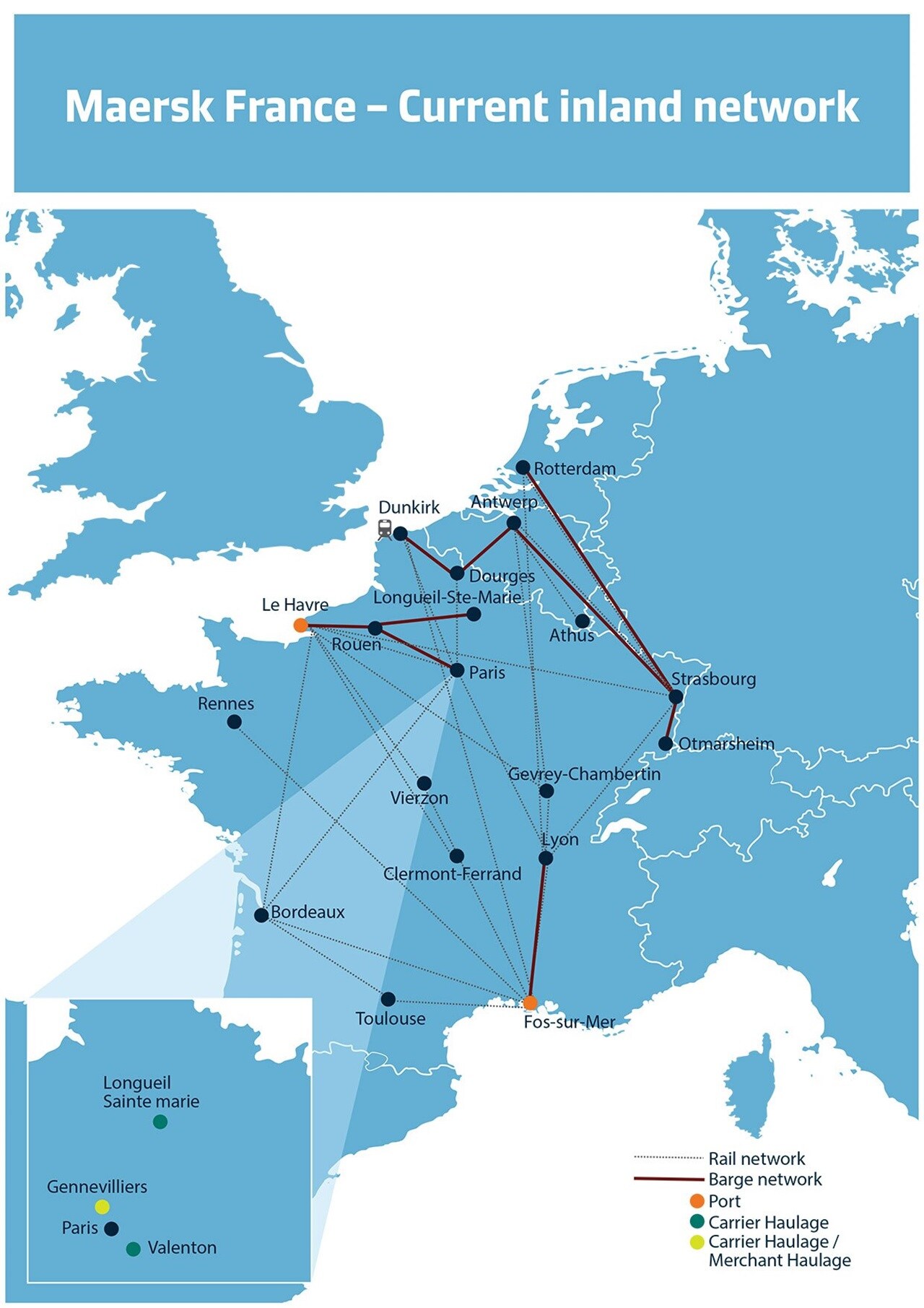 Maersk's barge service offers you a great respite from the notorious traffic jams in and around Paris. Not only does it keep your cargo from slowing down, you also get more dependable cargo transit times.