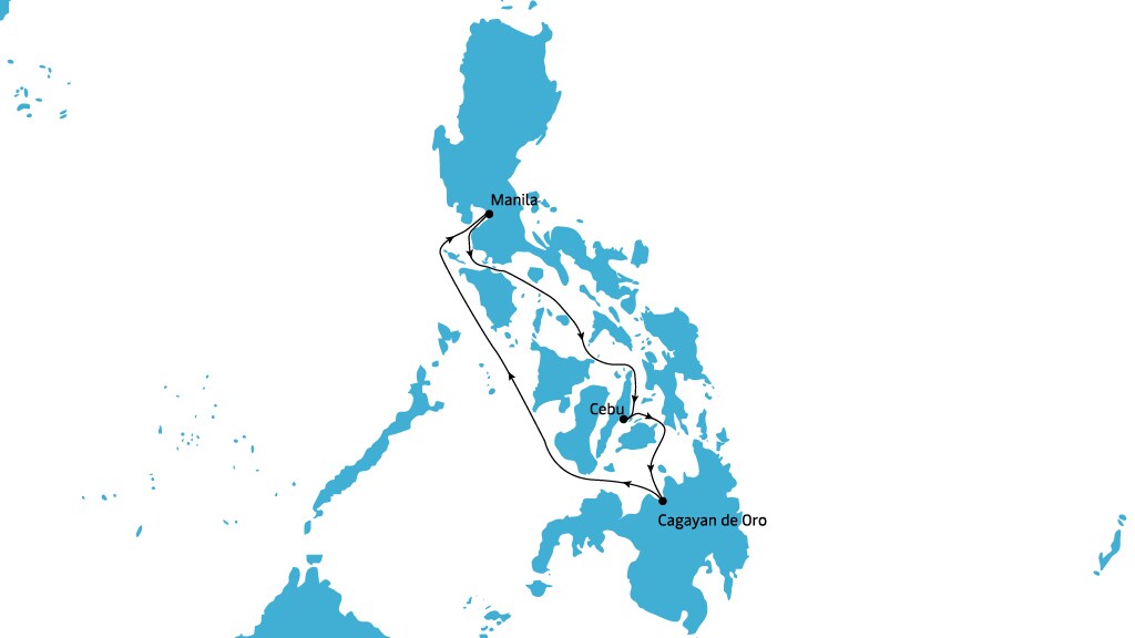 | Port call | Transit time | Arrives | Departs |