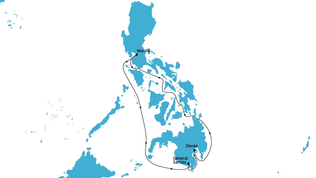 | Port call | Transit time | Arrives | Departs |