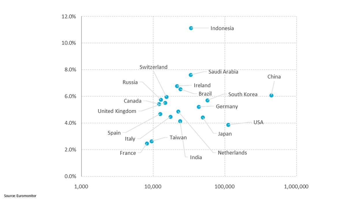 In Indonesia, production value is projected to increase at the fastest pace over 2020-2025. Large domestic market, foreign investments in petrochemical infrastructure, as well as income tax reduction for chemical companies during the lockdown helped to sustain growth.