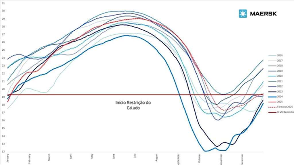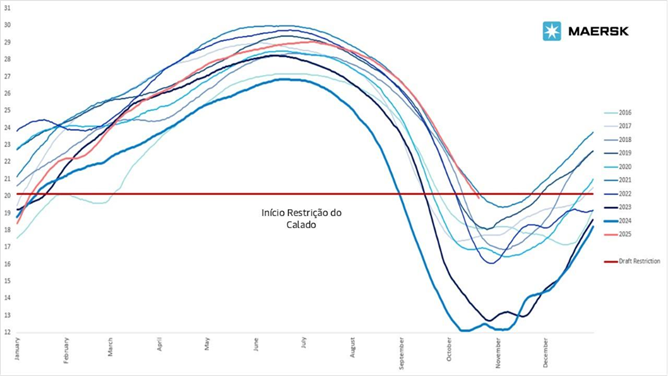 This decision marks the beginning of the navigation restriction period, limiting vessel loading capacity and, consequently, space availability. Considering this limitation, we will continue applying the previously announced Low Water Surcharge (LWC) without any changes.